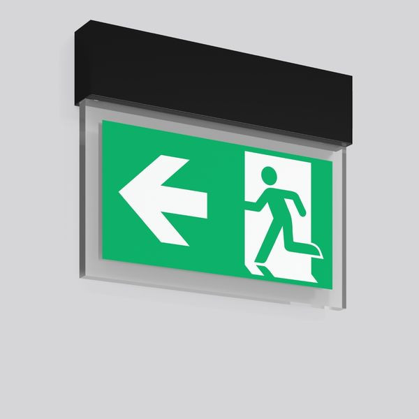 Leuchte zur Rettungswegkennzeichnung. Gehäuse Aluminium-Strangpressprofil eloxiert oder pulverbeschichtet. Displayscheibe Kunststoff hochtransparent mit Rettungszeichen einseitig. Betriebsgeräte integriert. Einzelbatteriesystem mit automatischem Selbsttest und Rückmeldung über DALI-Bus ausschließlich an das RZB DALI-Überwachungssystem.
