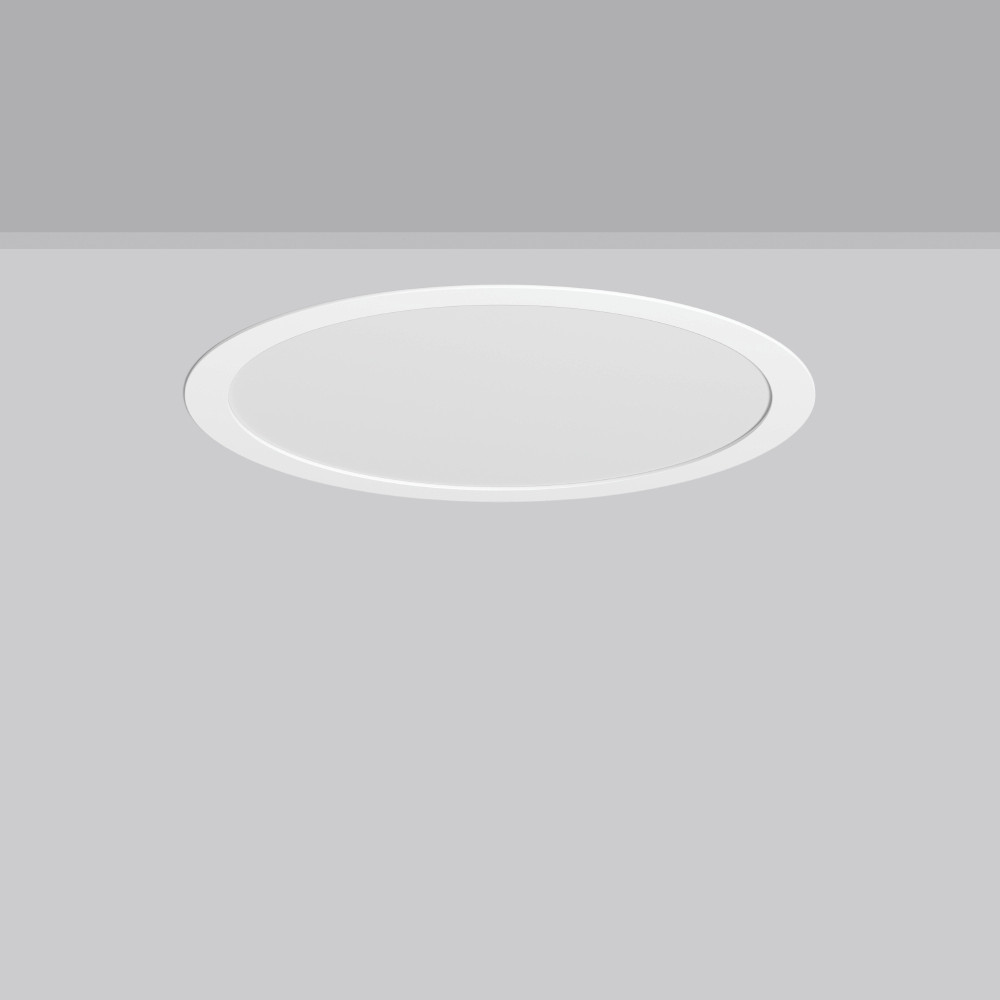 Flexibles rundes Einbau-Downlight mit Multi-Funktionen. Gehäuse Stahlblech pulverbeschichtet. Leuchtenrahmen Aluminium pulverbeschichtet. Lightguide und Diffusor aus vergilbungsfreiem PMMA opal matt. LED Backlight-Technologie für eine homogene Ausleuchtung der gesamten lichtabgebenden Fläche. MultiColour: Farbtemperatur 3000 K oder 4000 K mit Schaltelement individuell einstellbar. Werkseitig auf 4000 K eingestellt. MultiLumen: Einstellbarkeit des Leuchtenlichtstroms in 4 Stufen. Werkseitig auf Stufe 2 voreingestellt. Geeignet für Deckeneinbau. Deckenbefestigung mit Federsystem. Geeignet für direkte Abdeckung mit Wärmedämmungsmaterial (gilt nur für die unteren Lumenstufen). Inklusive Betriebsgerät extern über Steckverbindung, Verbindungsleitung 250 mm. Standardmäßig für Durchgangsverdrahtung geeignet. Anbaugehäuse als Zubehör für alle Größen.