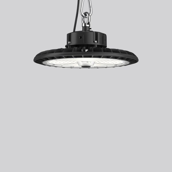Flacher runder Hallenstrahler für Ketten, oder Seilabhängung. Gehäuse Aluminium-Druckguss pulverbeschichtet. Diffusor Kunststoff (Polycarbonat), schlagzäh. MultiLumen: Einstellbarkeit des Leuchtenlichtstroms in 3 Stufen. Werkseitig auf höchsten Leuchtenlichtstrom voreingestellt. Einfache Installation durch Ein-Punkt-Aufhängung. Pendelabhängung über Kette oder Stahlseil bauseits. Mit 3-poliger Anschlussleitung (300 mm). Leuchte mit begrenzter Oberflächentemperatur nach DIN EN 60598-2-24 zur Verwendung in einer Umgebung, in der eine Ablagerung von leitfähigem Staub auf der Leuchte erwartet werden kann.