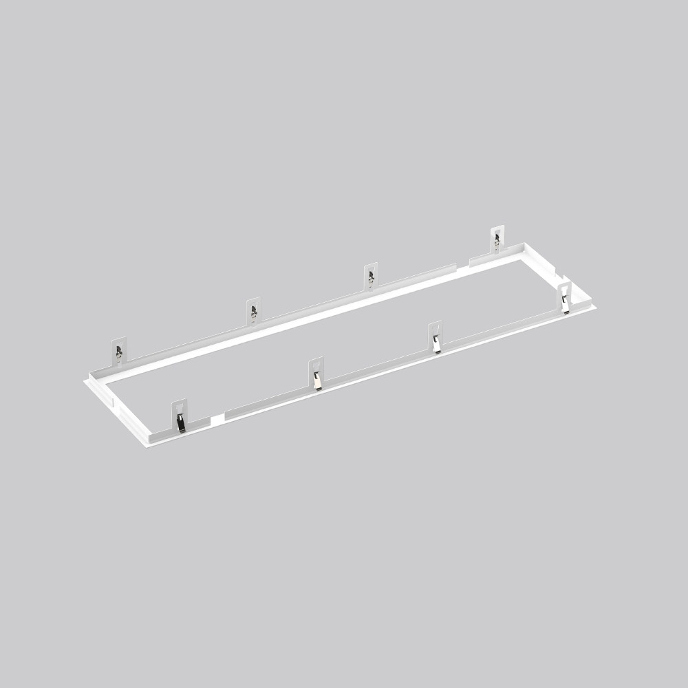 Einbaurahmen Stahlblech pulverbeschichtet, weiß. Zur Montage der Leuchte in abgehängte Decken. Einbautiefe mindestens 300 mm. Deckenstärke: 1-30 mm. Leuchte, Modulmaß 1200 x 300.