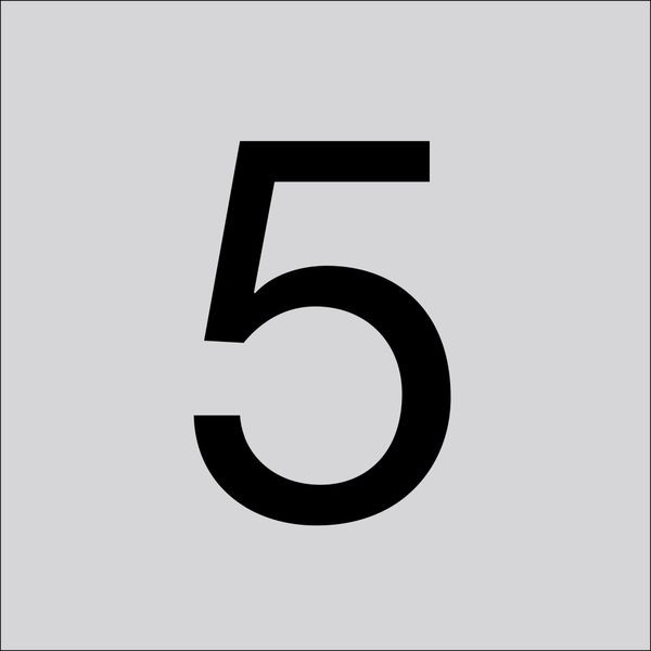 Selbstklebende Ziffern und Buchstaben. Zeichen: 5, Höhe 120 mm. Für Serie: Die superflache Hausnummernleuchte.