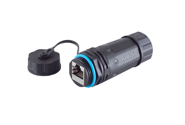 Dieser RJ45 Verbinder ist für den Einsatz im Außenbereich geeignet. Mit IP68 ist er für ein zeitweiliges Untertauchen und vor Staub geschützt.