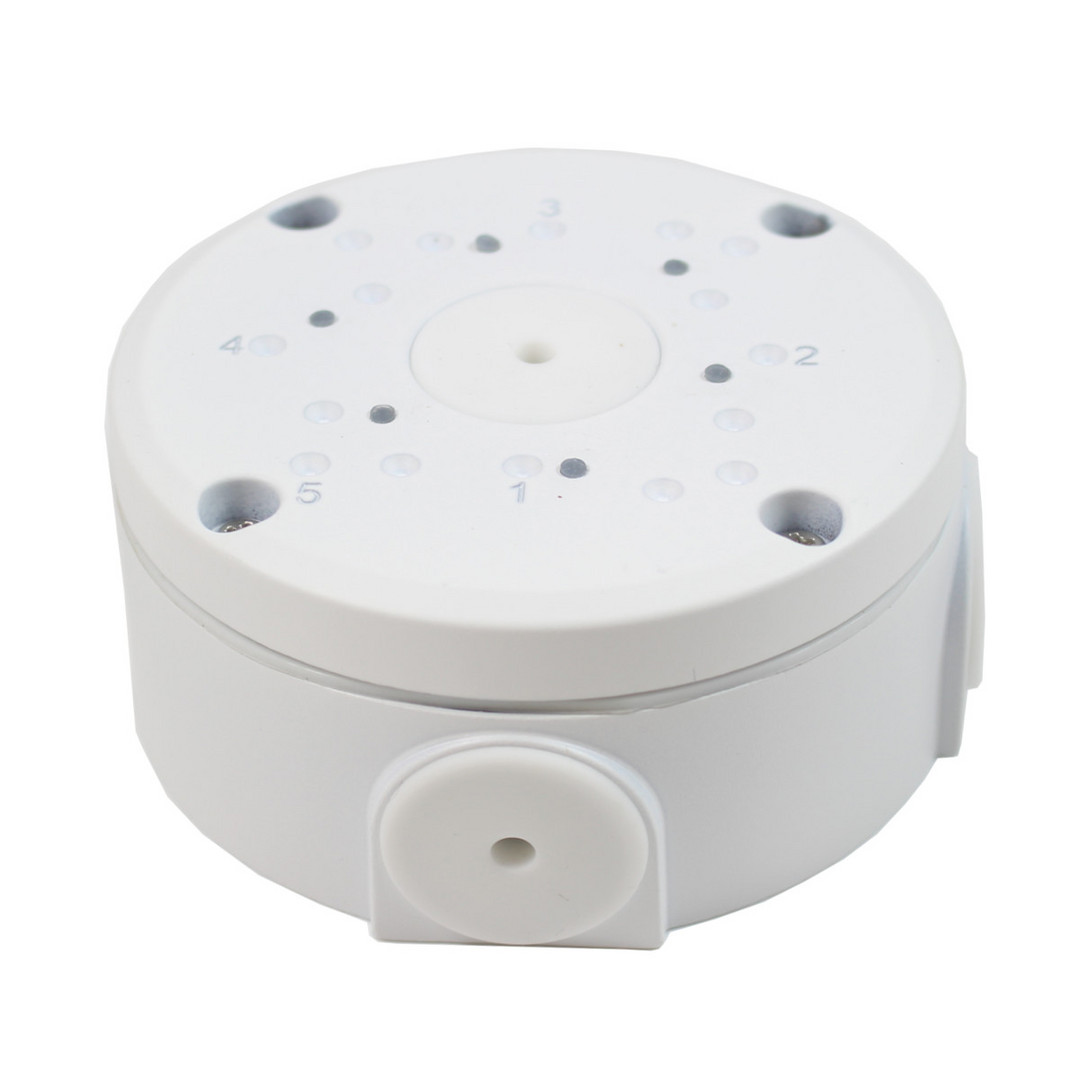 Montagebox zur professionellen Montage der Safe2Home Funk / POE Kameras Alle Kabel der Kamera lassen sich in der wetterfesten Aufputzdose verstauen Durchmesser ca. 10,5 cm , Tiefe ca. 5 cm Kabeldurchführung an Vorder / Rückseite und 2 Seiten möglich - Dichtungen für unbenutzte Öffnungen