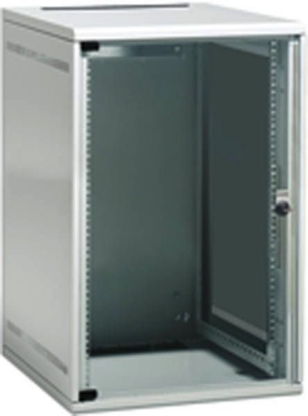 Hochwertige Stahlgehäuse (Lichtgrau RAL 7035) mit kompletter Grundausstattung, optimale Zugänglichkeit für schnelle Installation: Nach Aufschließen der Tür können Seitenwände einfach vorgezogen werden, Installationsfertig montiert mit Glas-Fronttür inkl. Schloss, mit 482,6 mm (19”) -Lochwinkeln vorne, Kabeleinführung durch Dach- und Bodenbereich und Kabelabfangschienen