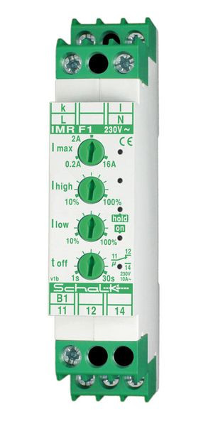 Stromfenster-Messrelais, Das Stromfenster-Messrelais IMR F1 wird eingesetzt zur Stromüberwachung von Wechselstromverbrauchern. Durch die einstellbaren Schaltschwellen "I Low" und "I High" erfolgt die Überwachung eines genau definierbaren Stromfensters., Maße: 18x55mm, I-Bereich - 20mA-16A, 230V AC - 1W 16A