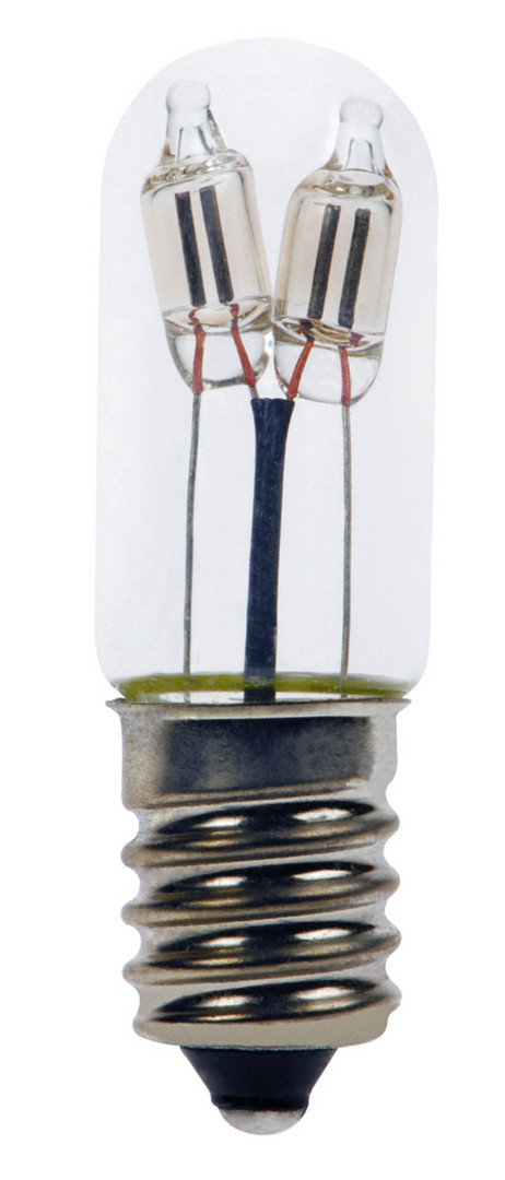 Glimmlampe 16x54 mm Glimmlampe in Röhrenform, E14 mit Widerstand. Glaskolben, zur optischen Signalanzeige. Energieeffizienzklasse: nicht kennzeichnungspflichtig