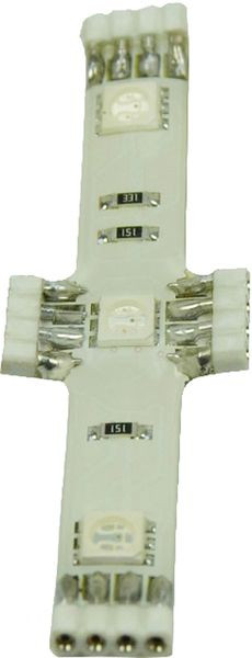 Kreuzverbinder weißes PCB für RGB-Bänder Zubehör für LED-Band 10mm. Kreuzverbinder, 4-polig, weißes PCB mit 3x 5050 SMD LED, 10mm für RGB-Bänder (Minus geschaltet).