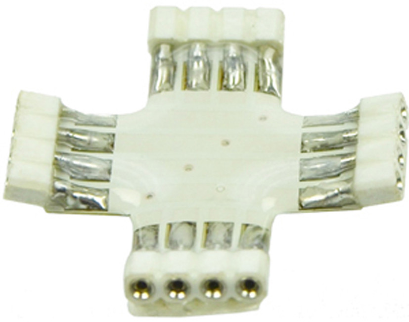 Kreuzverbinder weiß PCB für RGB-Bänder Zubehör für LED-Band 10mm. Kreuzverbinder, 4-polig, weißes PCB ohne LED, 10mm für RGB-Bänder.