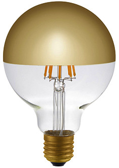 LED-Globeform Filament 95x135mm, dimmbar klassische Optik, energiesparende Technik: LED Globe mit 8 Filament-LED und goldenem Kuppenspiegel Quecksilbergehalt (mg): 0 Zündzeit/Startzeit (s): <0,5