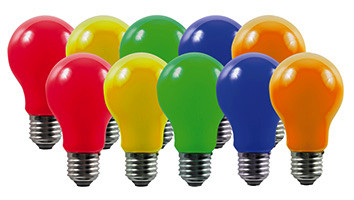 | Kurzbeschreibung | LED Allgebrauchsform-Sortiment E27 3W je 2x rot,gelb,grün,blau,orange |