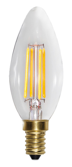 | Kurzbeschreibung | LED Kerzenform Filament 35x98mm E14 220-240VAC 4W/821 350Lm 2100K klar dimmbar |