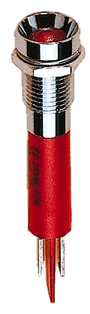 LED-Signallampe Außenreflektor 5mm Tageslichttaugliche LED-Signalleuchte, Einbau-Durchmesser 8mm für Schraubbefestigung im verchromten Metallgehäuse, Außenreflektor schwarzchrom, mit mattiertem Leuchtkörper für Frontplatteneinbau, serienmäßig Einweg-Gleichrichtung. Das benötigte Befestigungsmaterial mit Außendichtring ist im Lieferumfang enthalten. Energieeffizienzklasse: nicht kennzeichnungspflichtig