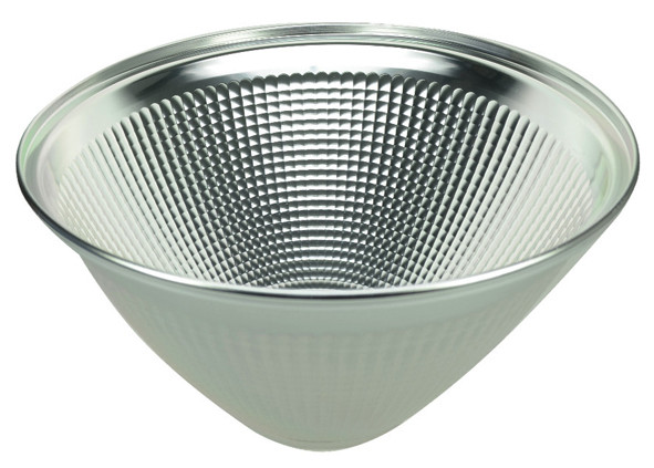 Reflektor für LED-Hallenstrahler Highbay 60° Reflektoren verteilen das Licht ohne Verluste gezielt von den LEDs auf die auszuleuchtende Fläche. Dabei wird es durch die Prägung des Reflektors perfekt verteilt. Die Prägung macht die Reflektoren ebenfalls unempfindlicher gegenüber äußeren Einflüssen.