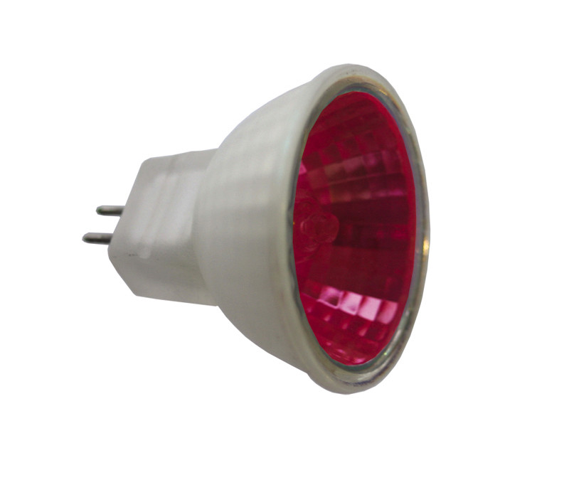 NV Halogenglühlampe 50x45mm Niedervolt Halogenglühlampe MR16, rot, Abstrahlwinkel 38°, Ansi-Code EXN, mit Kaltlichtreflektor und Frontglas Energieeffizienzklasse: nicht kennzeichnungspflichtig Quecksilbergehalt (mg): 0 Schaltzyklen: 8000 Farbwiedergabeindex (Ra): 100 Power-Faktor: 1