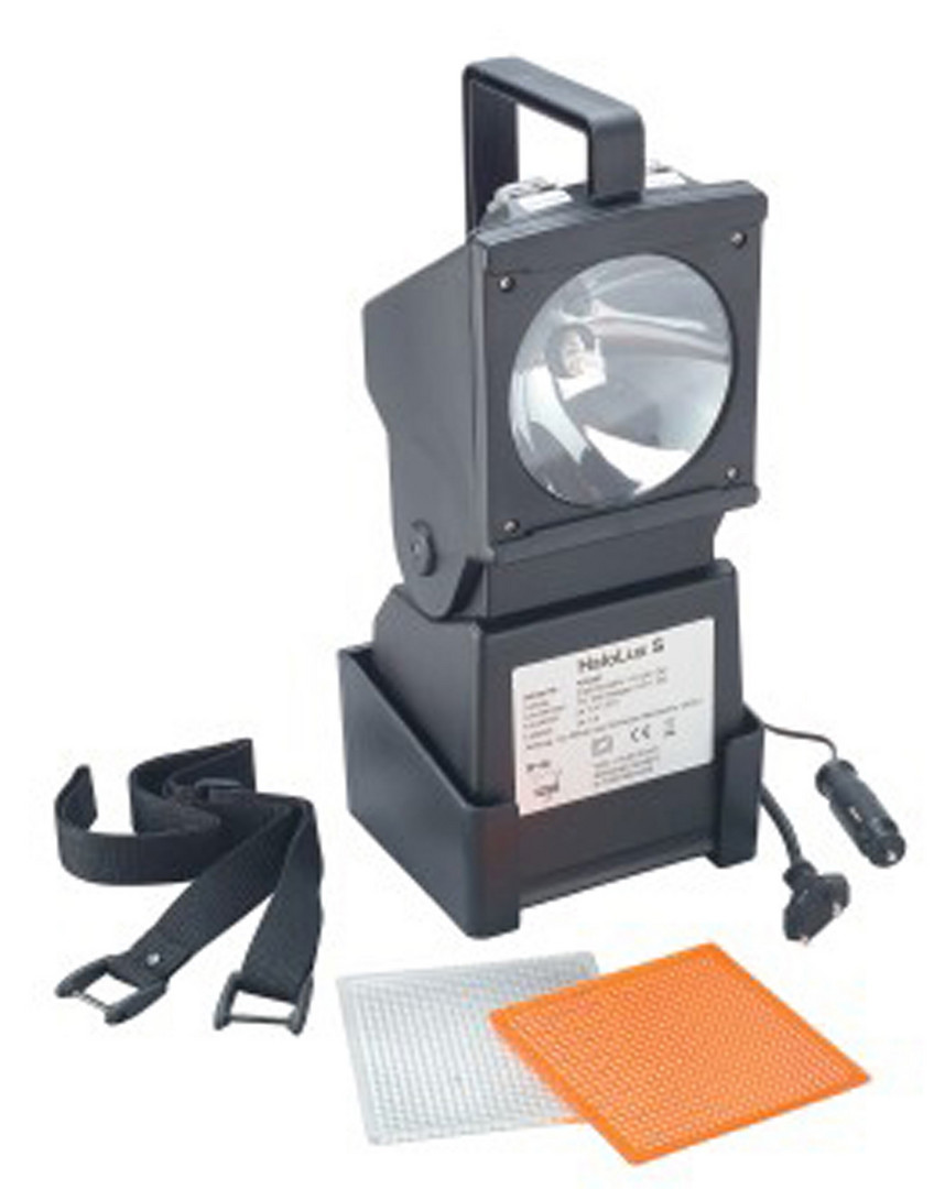 AccuLux HaloLux S Halogen Acculux Halolux S, Pilotlampe: W2x4,6d, 6V, 1,2W, Hauptlampe: G4, 6V, 10W, Halogen, Kunststoff schwarz, schlagfest, IP44, Schutzklasse II - Leistungsstarke 10W Halogen-Arbeitsleuchte mit Notstromfunktion, extrem kurze Ladezeit, wahlweise aufladbar vom 230V-Stromnetz und vom Kfz-Bordnetz 12-24V, Blinkeinrichtung wahlweise für Haupt- oder Pilotlampe, Überladesicher durch elektronisch geregelte Akkuladung, elektronischer Tiefentladeschutz, Blei-Gel Akku 6V/7,2Ah, Leuchtkopf um 120° vertikal schwenkbar, im Liederumfang enthalten: Tragegurt, Wand-/Fahrzeughalterung und Farbsignalscheiben glasklar und orange, Ladezeit ca. 4h, Leuchtdauer ca. Hauptlampe: ca.4h, Pilotlampe ca.29h, Leuchtweite ca.100m Energieeffizienzklasse: nicht kennzeichnungspflichtig