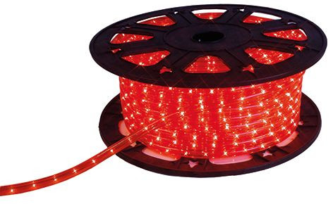 Kurzbeschreibung LED-Lichtschlauch Ø13mm 90m-Rolle 3,3W/m 36LED/m IP44 rot mit Stecker + Endstück