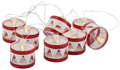 LED-Deko Lichterkette 1,5m mit 8 Trommeln rot/weiß, Steuerung über Fernbedienung möglich (nicht enthalten), z.B. für Tablett-, Tisch- oder Ast-Deko, 150-cm-Kabel silber + 30 cm Zuleitung, Batteriebetrieb: 2xAA (nicht inkl.) Energieeffizienzklasse: nicht kennzeichnungspflichtig Quecksilbergehalt (mg): 0