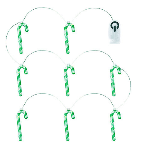 LED Lichterkette Zuckerstange 1,3m grün/frosted 8 grün-weiße Zuckerstangen an 1,05--m-Kette, + 25 cm Zuleitung, Betrieb mit 2xAA Batterie (nicht inkl.), Steuerung über Fernbedienung möglich (nicht inkl.) Energieeffizienzklasse: nicht kennzeichnungspflichtig Quecksilbergehalt (mg): 0