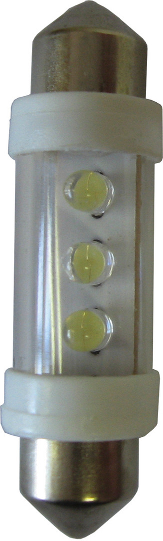 | Kurzbeschreibung | LED-Lampe 3LED 11x38mm mit Widerstand SV8,5 12V weiß nicht im öffentl.Verkehr zugel. |