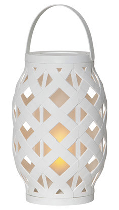 LED-Laterne Flame Lantern 15x23cm weiß Laterne aus Kunststoff, mit flackernder Flamme im Inneren, zur Anwendung im Innen- und geschützten Außenbereich, mit Timer (6h an/18 h aus) und on-/off-Schalter, Batteriebetrieb: 3xAAA /100h, nicht enthalten Energieeffizienzklasse: Auslauftype Quecksilbergehalt (mg): 0