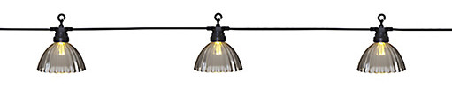 LED Party Kette 4,95m Zwölf kleine rauchfarbene Lampenschirme an schwarzem 5-m-Kabel, für den Innen- sowie geschützten Außenbereich Energieeffizienzklasse: Auslauftype Quecksilbergehalt (mg): 0