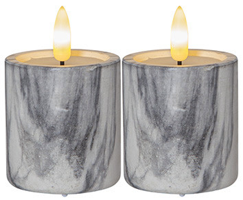 | Kurzbeschreibung | LED-Kerze Marmoroptik 5,5x9cm Indoor, Batteriebetrieb, 2erPack |