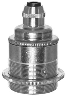 Messing-RETRO-Fassung, E27 Deko-Fassung, Nickel glänzend, mit Teilgewindemantel, inkl. Schraubring und Zugentlastung