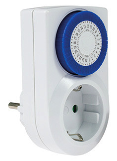 Tages-Zeitschaltuhr mechanisch Mechanische Zeitschaltuhren bieten eine komfortale Ein-/Aus-Schaltung von angeschlossenen Geräten wie z. B. Leuchten, Radiatoren, Radiogeräten. Tageszeitschaltuhren bieten einen Schaltabstand von 30 Minuten.