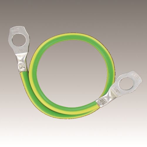 Verdrahtungsbrücke H07V-K 1x10qmm, grün/gelb, Länge: 300mm, mit beidseitig Rohrkabelschuh 10qmm