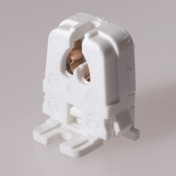 für Leuchtstofflampen in Stabform 4, 6, 8 und 13 Watt mit Ø 16 mm, seitliche Rastnasen für Wanddicke 0,6-1,2 mm², sowie Befestigungsfuß mit Schlitz zum Anschrauben