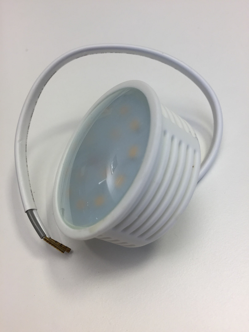 Dimmbare LED FLAT Modul 5W/230V in Keramik als Ersatz für GU10 Leuchtmittel, Farbe warmweiß. Zum Einbau in Deckeneinbaustrahler extra flach (Höhe nur 20mm), nicht austauschbare LED, Abmessungen: 50x23mm (Gehäuse: 50x20mm)