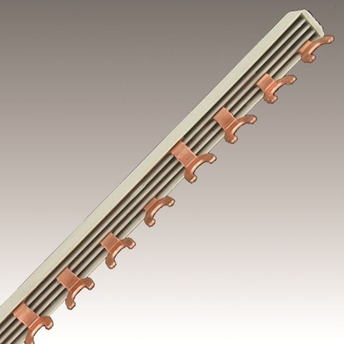 Phasenschiene 4pol., für FI(4pol.)/LS-Schalter (4p Gabelschuhausf. 10mm²/63A, Modulbreite 17,8mm 12 Pole, Länge 210mm