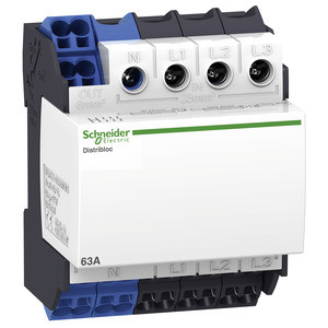 | Kurzbeschreibung | Verteilerb. Distriblock 63A 4 TE 24Anschlüsse L1, L2, L3, N Einsp. oben |