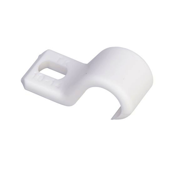 Kabelschelle ohne Schraube TK10-14 (14/27/13) weiß. Kabelschellen für die Verlegung von Rundkabeln. Zur Installierung von Kabeln oder Kabelrohren. Montage auf Holz erfolgt mit Holzschrauben. Für die Montage auf Beton, Stein, Gipskarton, usw. sind Friktionsdübel TP oder Schraubnageldübeln TPS erforderlich. Flexibel jede Größe deckt verschiedene Kabelquerschnitte ab, hohe Schlagfestigkeit und Beständigkeit gegenüber extremer Hitze und Kälte sowie Säureeinwirkung, breites Sortiment, Befestigung mit Schraubnageldübel TPS oder Holzschraube. schlagfestes PP (Polypropylen) Temperaturbereich: -40 bis +80 °C.