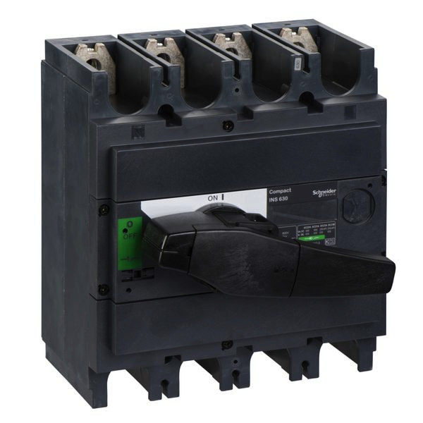 Compact INS630 ist ein 4-poliger, nicht selbsttätiger Lasttrennschalter 630A mit schwarzem Drehgriff.