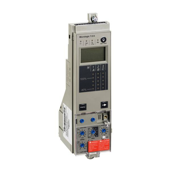 Das Micrologic 7.0 A ist ein elektronisches Steuer- und Auslösegerät, das bei den Leistungsschaltern MasterPact NT/NW in Einschubtechnik verwendet wird. Das Micrologic 7.0 verfügt über einen einstellbaren Langzeitschutz, kurzzeitverzögerten und sofortigen Kurzschlussschutz, sowie einen Differenzstromschutz. Dieses Steuergerät ist kompatibel mit NT 06 bis NT 16, NT/NW 08 bis NW 40, NW 40 bis NW 63. MasterPact NT/NW ist die neueste Generation von offenen Leistungsschaltern bis 6300 A, in der fortschrittliche digitale Technologien integriert sind. MasterPact NT/NW wurde entwickelt, um elektrische Anlagen vor Schäden durch Überlast, Kurzschlüsse und Erdschlüsse zu schützen.