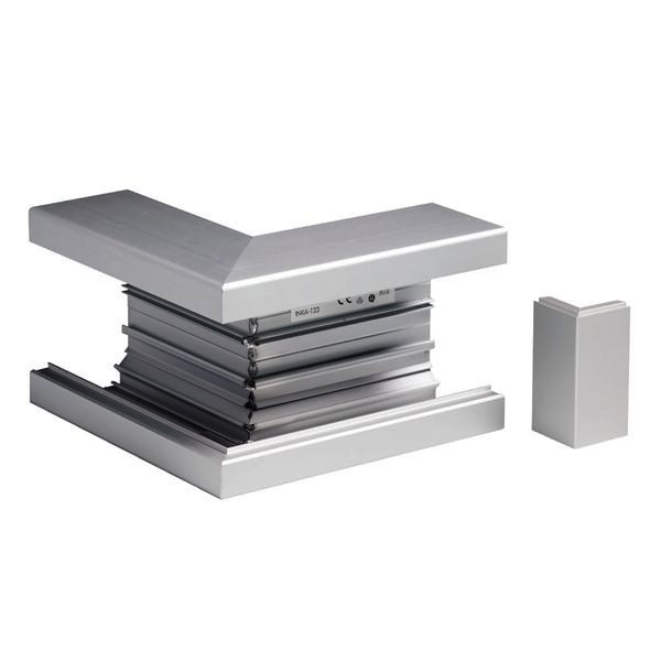 INKA 123/72 Außenecke m Abdeckung, Aluminium natureloxiert TypINKA YH 123/72 AN. Formstück mit 80-mm-Frontöffnung. Kann mithilfe von Kabelträgern in Fächer unterteilt werden. Material Aluminium.