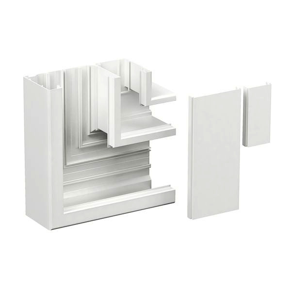 INKA 161-2/72 Flachwinkel m Abdeckung oben Alu RAL9016 TypINKA LSU161-2/72 9016. Formstück mit 80-mm-Frontöffnung. Kann mithilfe von Kabelträgern in Fächer unterteilt werden. Material Aluminium.