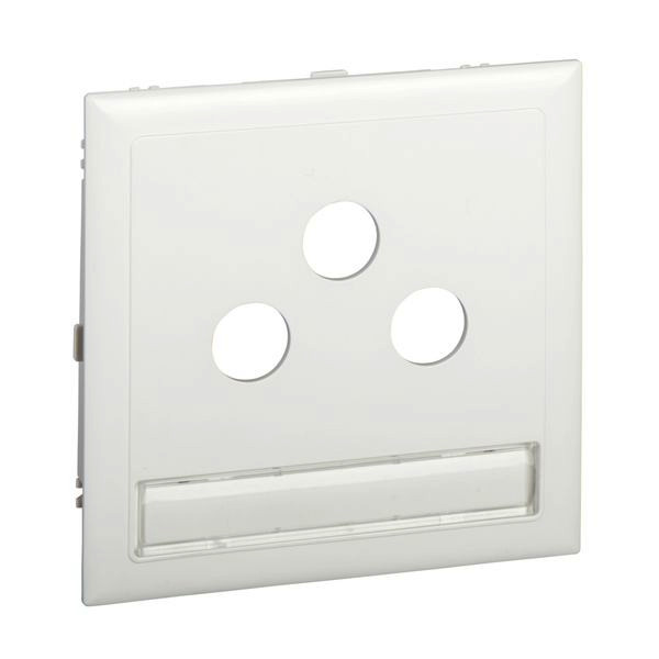 Zentralplatte- Antennensteckdose 3-Loch (R+TV+SAT) RAL9016 weiß TYPCYB-BK9 9016. CYB-BK9 Mit Montagerahmen, angepasst für c/c-60-mm-Zubehör, und Abdeckung mit Lochmuster, geeignet für Antennendosen des Typs R+TV+Sat.