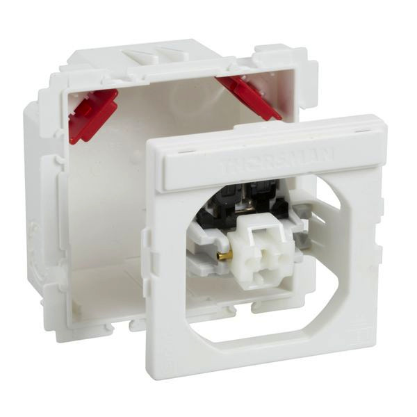 Taster 250V/16A Einsatz 1 polig mit Dose ohne Wippe Typ CYB-PB. Schalter-Zubehör-Kit mit Dose, Schaltereinsatz, Adapter und zwei Zugentlastungsvorrichtungen. Einschaltposition oben. 250 V, 16 A. Kombinierbar mit dem Frontabdeckungskit. Material PC/ABS, PA.