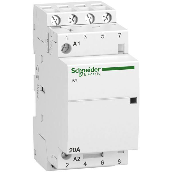 Installationsschütz Acti 9 iCT. Nennstrom 20A, 4S, Steuerspannung 220/240V, 50Hz, Isolationsspannung (Ui) 500V AC. Schalten von Stromkreisen bis 100A. Klemmen IP 20. Geräuscharmes Schalten. Mechanische Schaltstellungsanzeige. Installationsschützen mit Vorwahl verfügen über einen frontseitigen Betriebsartenwahlschalter mit vier Schaltstellungen. Kompatibel mit der gesamten Produktreihe Acti 9. Der iCT Installationsschütz erfüllt folgende Normen- EN 61095 und IEC 1095. Des Weiteren ist diese Baureihe VDE zertifiziert!.