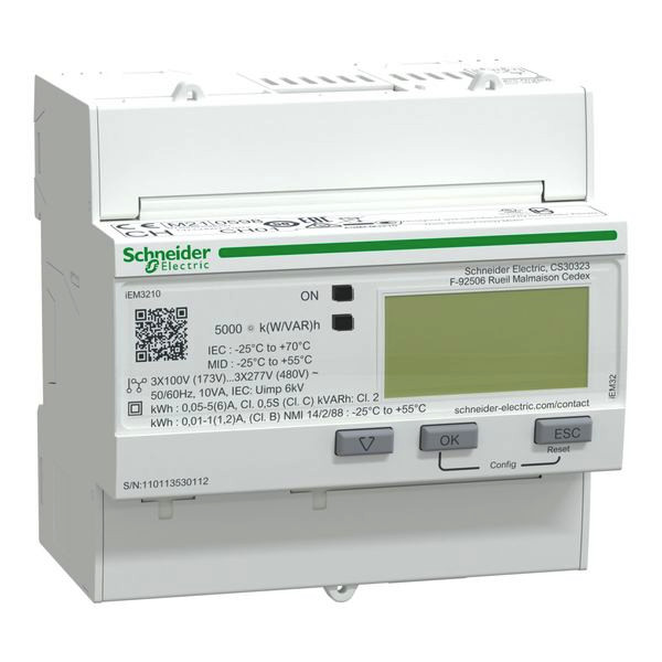 | Kurzbeschreibung | Energiezähler iEM3210, 3-phasig, 1A/5A, mit Teilzähler, S0-Impuls, MID konform, Genauigkeitsklasse 1/0,5s |