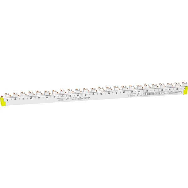 Phasenschiene Steg Acti 9 für FI/LS. 1-polig+N, ablängbar, 24 Module für 12 FI/LS, Nennstrom 80A, Betriebsspannung (Ue) 230V AC, Isolationsspannung (Ui) 500V. Farbe RAL 7016. Die Phasenschiene Steg für FI/LS erfüllt folgende Normen- IEC 60947-7-1 und IEC 61439-1.