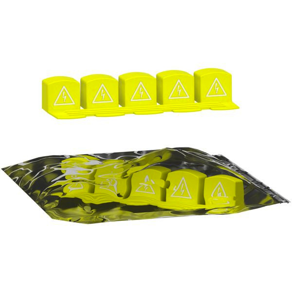 Berührungsschutzkappen Acti 9. TE 9 mm, Phasenschiene Steg 100 A für Acti 9- iDPN, iDPN Vigi (FI/LS). Verpackungseinheit 20 Streifen je 5 Abdeckungen. Isolation von nicht benötigten Modulen. Farbe- Gelb.