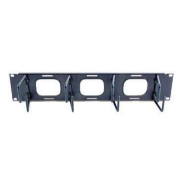 Erleichtert frontseitiges Kabelmanagement und ermöglicht das Durchführen von Kabeln zu Geräten an der Rückseite. Nimmt zwei Einheiten im Rack ein.