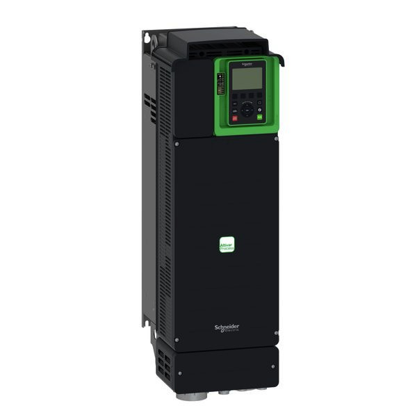 Altivar 600 Prozess Frequenzumrichter - Umrichter zum Betrieb und Schutz von Pumpen. Frequenzumrichter ATV630, 40 HP, 380-480V, IP21. Abmessungen 226 x 673 x 271 mm, Leistung KW 30 kW. Ausgangsfrequenz 0,1-500 Hz. Überlast im Normalbetrieb 110% für 60s, Überlast im Modus hohe Überlast 150% für 60s (bei Deklassierung um eine Leistungsklasse). Steuerungstypen Asynchronmotoren, konstantes Drehmoment, variables Drehmoment, optimierter Drehmomentmodus, Synchronmotor PM, (Permanentmagnet) Motor. Integrierte Sicherheitsfunktion STO (Sichere Anlaufsperre (Safe Torque Off)) SIL3. Anzahl der integrierten E/A Analoge Eingänge 3. Analoge Ausgänge 2. Digital Eingänge 8. Relaisausgänge 3. Integrierte Kommunikation Modbus/TCP, serielle Modbus-Schnittstelle. Konfigurations- und Bedienelemente Dezentrales grafisches Bedienterminal, integrierter Web-Server, DTM (Device Type Manager), SoMove-Software. Optional E/A-Erweiterungskarten, Relaisausgangskarten. Optionale Kommunikationskarten, (EtherNet/IP und Modbus/TCP mit zwei Ports, CANopen Daisy Chain RJ45, Sub-D und Schraubklemmen, ProfiNet, Profibus DP V1 und DeviceNet).