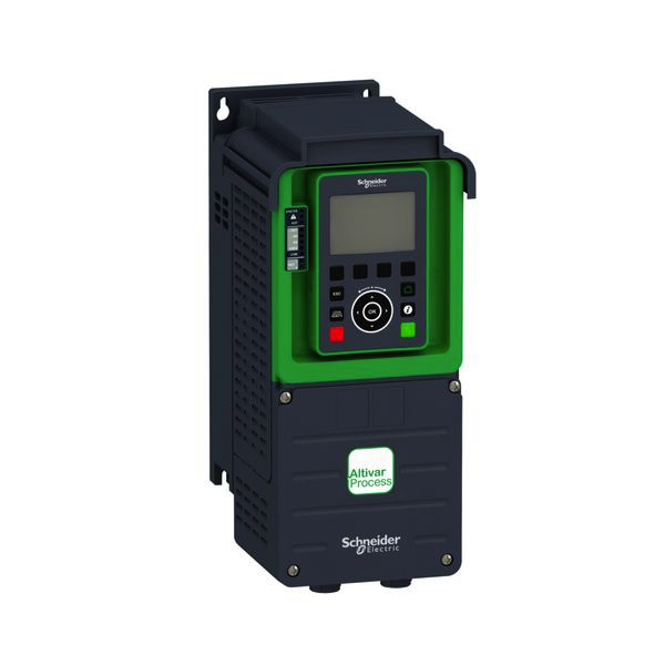 Altivar 900 Prozess Frequenzumrichter - Umrichter zum Bewegen von Festkörpern & Mechaniken z.B. Brecher, Mischer, Extruder, Förderbänder, Krane. Wandmontage. Frequenzumrichter ATV930, mit Bremsmodul. Abmessungen 144 x 350 x 206 mm, Leistung KW 1,5 kW. Versorgungsspannung, dreiphasig 200-240 V 50/60 Hz. Ausgangsfrequenz 0,1-500 Hz. Überlast im Normalbetrieb 120% für 60s, Überlast im Modus hohe Überlast 150% für 60s (bei Deklassierung um eine Leistungsklasse). Steuerungstypen Asynchronmotoren, konstantes Drehmoment, variables Drehmoment, optimierter Drehmomentmodus, Synchronmotor PM, (Permanentmagnet) Motor. Integrierter Webserver mit direktem Zugriff auf Systemkonfiguration und Überwachung, einfache Master/Slave Kopplung über Ethernet, mit Lastausgleich. Applikative Funktionen für z.B Förderbänder oder Krane. Fortlaufende und historische Echtzeitmessungen mit kundenspezifisch anpassbaren Dashboards. Integrierte Sicherheitsfunktion STO (Sichere Anlaufsperre (Safe Torque Off) SIL3. Anzahl der integrierten E/A Analoge Eingänge 2 analoge Differentialeingänge, Logikeingänge 8, Relaisausgänge 3, Analoge Ausgänge 2. Integrierte Kommunikation Ethernet-basiert (mit 2 Ports, intern geswitcht) Modbus/TCP, Ethernet/IP. Serielle Kommunikation Modbus RS485-Schnittstelle. Konfigurations- und Bedienelemente Dezentrales grafisches Bedienterminal, integrierter Web-Server, DTM (Device Type Manager), SoMove-Software. Optional E/A-Erweiterungskarten, Relaisausgangskarten. Optionale Kommunikationskarten (CANopen Daisy Chain RJ45, Sub-D und Schraubklemmen, ProfiNet, Profibus DP V1, EtherCAT und DeviceNet).