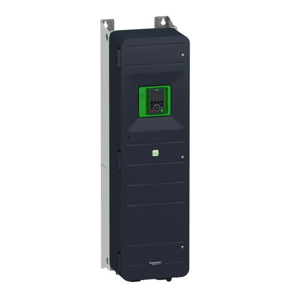 Altivar 900 Prozess Frequenzumrichter - Umrichter zum Bewegen von Festkörpern & Mechaniken z.B. Brecher, Mischer, Extruder, Förderbänder, Krane. Wandmontage. Frequenzumrichter ATV950, mit Bremsmodul/Schalter. Abmessungen 345 x 1250 x 375 mm, Leistung KW 75 kW. Versorgungsspannung, dreiphasig 380-480 V 50/60 Hz. Ausgangsfrequenz 0,1-500 Hz. Überlast im Normalbetrieb 120% für 60s, Überlast im Modus hohe Überlast 150% für 60s (bei Deklassierung um eine Leistungsklasse). Steuerungstypen Asynchronmotoren, konstantes Drehmoment, variables Drehmoment, optimierter Drehmomentmodus, Synchronmotor PM, (Permanentmagnet) Motor. Integrierter Webserver mit direktem Zugriff auf Systemkonfiguration und Überwachung, einfache Master/Slave Kopplung über Ethernet, mit Lastausgleich. Applikative Funktionen für z.B Förderbänder oder Krane. Fortlaufende und historische Echtzeitmessungen mit kundenspezifisch anpassbaren Dashboards. Integrierte Sicherheitsfunktion STO (Sichere Anlaufsperre (Safe Torque Off) SIL3. Anzahl der integrierten E/A Analoge Eingänge 2 analoge Differentialeingänge, Logikeingänge 8, Relaisausgänge 3, Analoge Ausgänge 2. Integrierte Kommunikation Ethernet-basiert (mit 2 Ports, intern geswitcht) Modbus/TCP, Ethernet/IP. Serielle Kommunikation Modbus RS485-Schnittstelle. Konfigurations- und Bedienelemente Dezentrales grafisches Bedienterminal, integrierter Web-Server, DTM (Device Type Manager), SoMove-Software. Optional E/A-Erweiterungskarten, Relaisausgangskarten. Optionale Kommunikationskarten (CANopen Daisy Chain RJ45, Sub-D und Schraubklemmen, ProfiNet, Profibus DP V1, EtherCAT und DeviceNet).