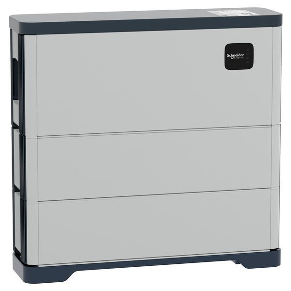 Schneider Boost Batterie Modul mit 6,8kWh Kapazität. Bestehend aus 2 x Schneider Boost Batterie Modul (BATB3KEU3) mit je 3,4kWh Kapazität und dem Schneider Boost Batterie Controller (BATPMEU2). Nutzbare Energie 6200Wh. Betriebstemperatur -25 bis 55°C, Abmessungen BxHxT 799x767x218 mm, Gewicht 80kg, Schutzgrad IP55. Normen: IEC 63056, IEC 62619, IEC 62477-1, EN 61000-1/3.