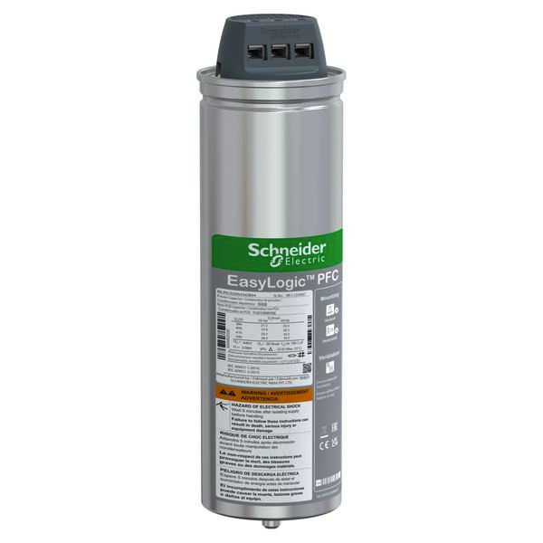 EasyLogic PFC Kondensatoren sind für den Betrieb in leicht verschmutzten Netzen mit Filterkreisdrosseln ausgelegt. Diese Kondensatoren werden für Standardbetriebsbedingungen verwendet, wenn keine nennenswerten nichtlinearen Lasten vorhanden sind. Diese Kondensatoren sind die richtige Wahl, um die Einsparungen in einem stabilen elektrischen System zu maximieren. Dieser Kondensator liefert eine Nennausgangsleistung von 28,5 kVar bei 440V AC, 50 Hz. Die Befestigung wird durch eine ClampTite-Klemme gewährleistet. Diese Komponente entspricht den Normen IEC 60831-1 und IEC 60831-2. Das Gewicht des Produktes im Gehäuse beträgt 2,3 kg.